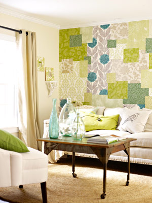 (patcwork desenli duvar kağıtları bulunuyor. Büyük boş duvarlar şık dekorasyona sahne oluyor. Panellerin dışında uygun renkler kullanarak büyük örtüler oluşturup çerçevelenip boş duvarları da süsleyebiliyor. Kumaş kırkyama (patcwork) çalışmalarından paneller de yapılıyor. Renkli duvarlar 2012 trendlerinin arasında yer alırken kırkyama (patcwork) baskı kumaşlar perde olarak da odaları süslüyor. Duvarlarda gözleri dinlendirmesi açısından özellikle pastel renkler kullanılıyor.